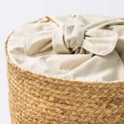 Braided Water Hyacinth Decorative Container With Coiled Rope Handles – Gray – Cloud Island™